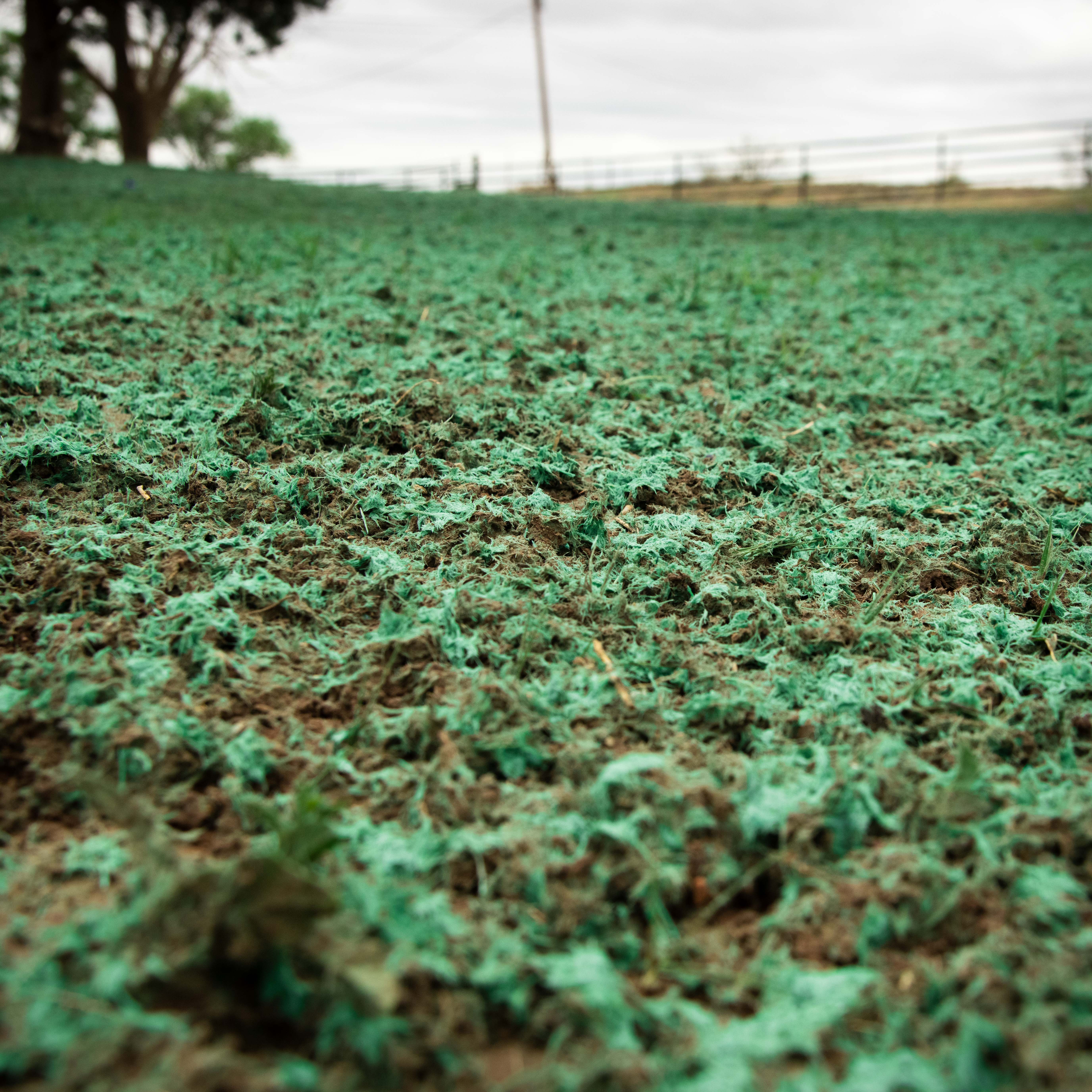 Paper, mulch, seed, and fertilizer — sprayed to grow a full lawn over big areas. 5,000 square foot minimum.